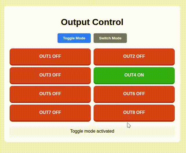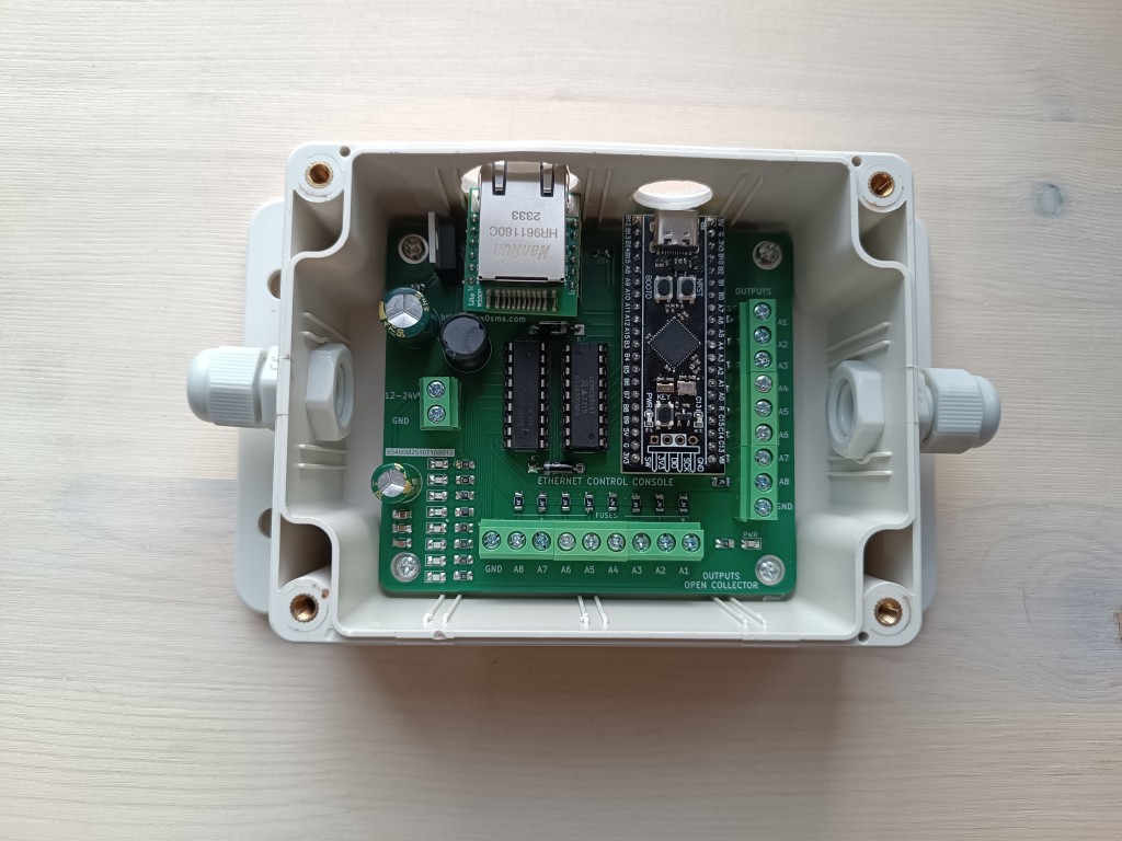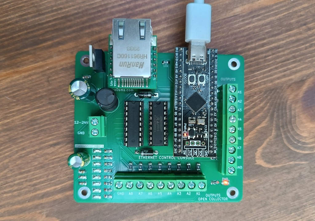 Управление происходит через любой веб-браузер, доступ к странице по IP адресу устройства. При включении любого выхода на соответствующем контакте винтового зажима появляется напряжение питания, поданное на контакты 12-24V. На самом деле границы питающего напряжения шире (5-45В), но самые распространенные коммутаторы антенн в 99% случаев внутри имеют реле на напряжение 12 или 24(27)В. Помимо основных выходов напряжения, есть дублирующие их выходы с открытым коллектором, на которые можно подключить дополнительные реле или устройства.