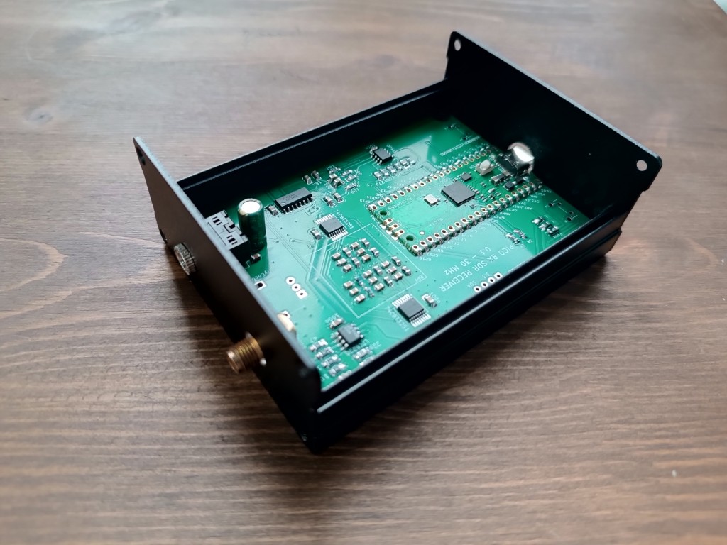 Печатная плата была переработана под один из самых распространенных металлических корпусов на маркетплейсах. Как вариант, либо можно найти по поисковому запросу «корпус 100*76*35». Места установки органов управления и дисплея остались на плате, но никуда не подключены, так как приемник задумывался как исключительно цифровой.