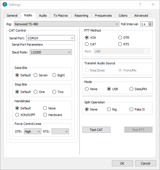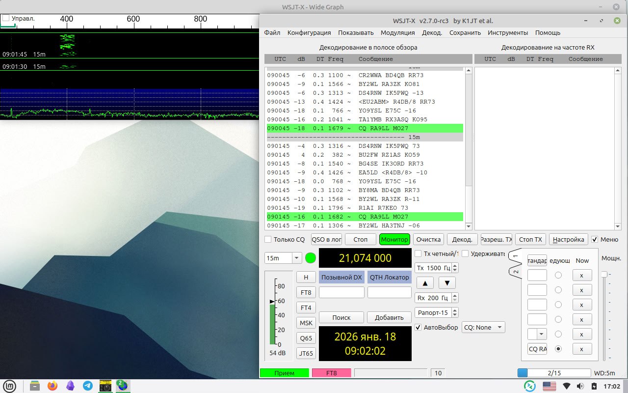 В итоге получился простой и дешевый приемник для мониторинга, например, WSPR сигналов. Также его можно использовать для приема станций в FT8. Управление частотой происходит прямо из окна программы WSJT (или JTDX). Если есть желание просто послушать эфир за пределами цифровых полос, можно управлять перестройкой по частоте из окна программы FLRig. Там же можно менять режим модуляции. Собственно, для этого и был добавлен выход аудио для наушников.