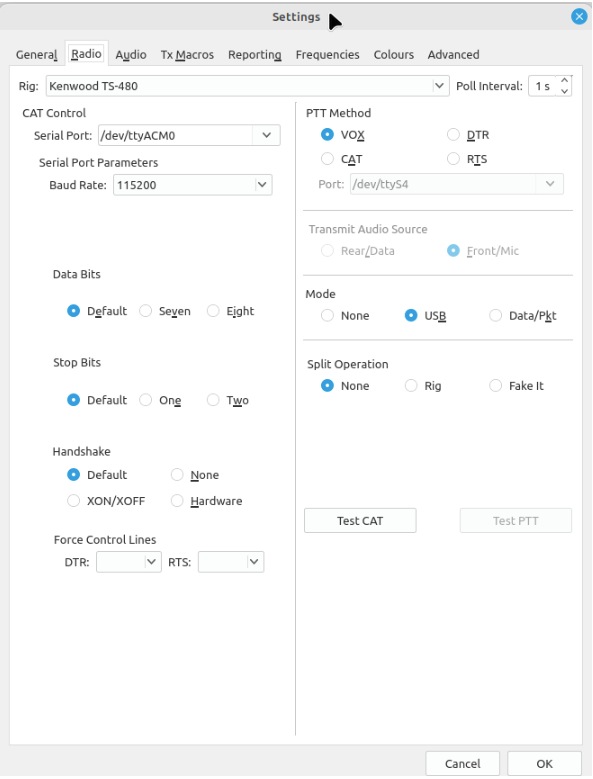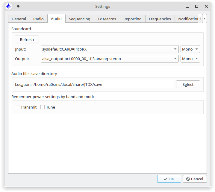 Окно настроек WSJT-X (или JTDX) выглядит так: