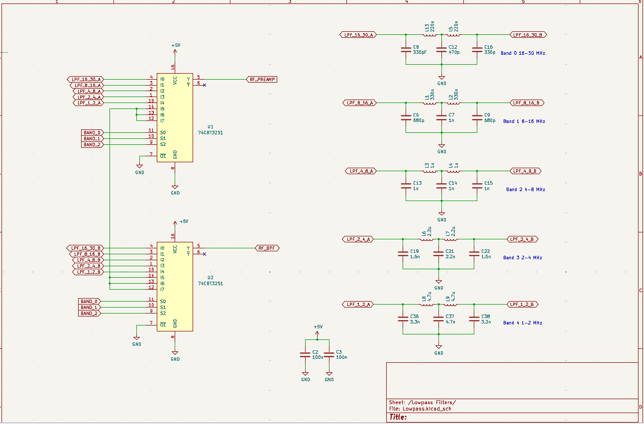 В ДПФ применены микросхемы SN74CBT3251 для коммутации диапазонов. Это довольно интересное решение, которое позволяет обойтись без реле при переключении фильтров.