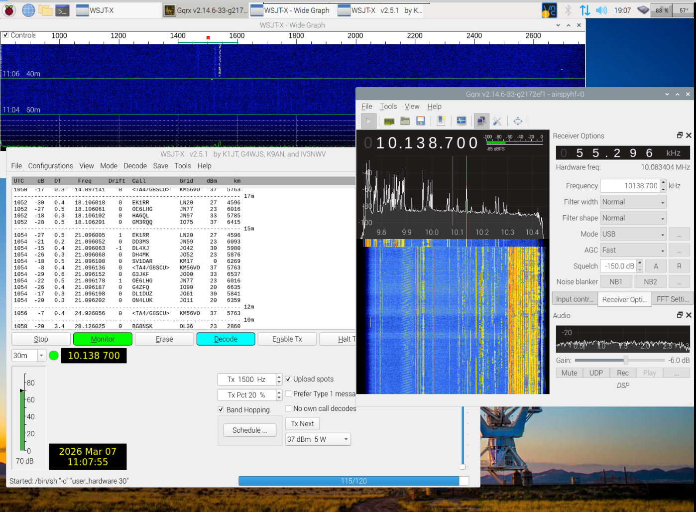 Я уже писал про мониторинг WSPR сигналов. Для этих целей хотелось бы иметь максимально простой комплект — антенна, приемник и самый простой одноплатный компьютер. Всё должно автоматически стартовать, и при наличии интернет соединения отсылать каждые 2 минуты споты в интернет (wsprnet.org). Один из вариантов — использовать Raspberry Pi с установленной Desktop версией ОС. Это позволит запустить привычный интерфейс WSJT и использовать практически любой приемник (в том числе и SDR).